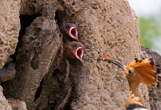Khi chim non đã nở chúng cũng sẽ tự sản xuất ra một chất khi bài tiết có mùi giống như thịt thối, và trây trét vào bộ lông của chúng, ngoài việc ngăn ngừa kẻ thù. Trường hợp nếu một con rắn dám mon men vào tổ khi chim bố mẹ không có ở nhà các chim non khi cảm giác được nguy hiểm sẽ bài tiết thẳng phân của chúng vào kẻ thù và rít lên với một cái giọng giống như giọng của một con rắn, chất lỏng hôi thối này sẽ làm cho con rắn bỏ chạy không cần suy nghĩ. chất lỏng có mùi hôi này còn được sử dụng như một áo giáp để ngăn chặn ký sinh trùng và nó cũng hoạt động như một chất kháng khuẩn.