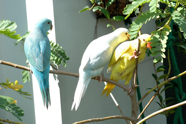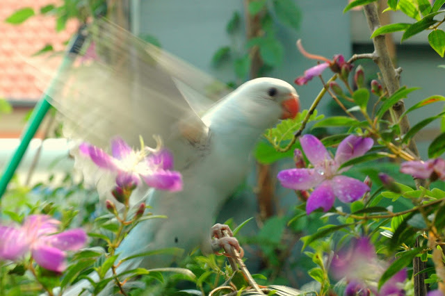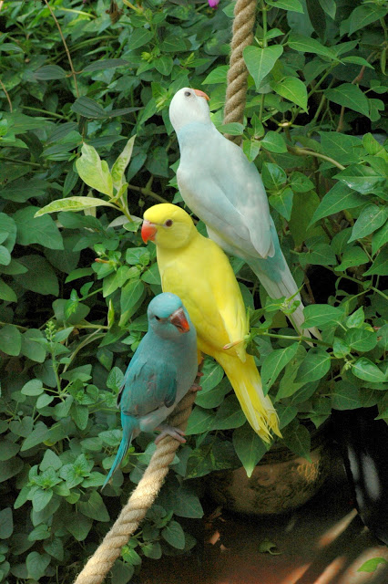 Mấy nhóc ở nhà tôi hiện tại là chim non, 8-9 tuần tuổi. Chúng đã biết học leo trèo, tối đã ngủ trên cần đậu, đã bắt đầu vỗ cánh phành phạch để tập bay, một số bé đã bay sà được đoạn ngắn vài ba mét. Nhưng chúng vẫn đang ăn mớm chứ chưa tự ăn hoàn toàn được.