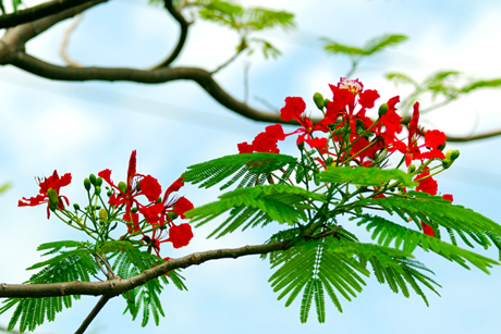 Hoa có năm cánh đỏ rực và nhìn cả cây hoa nở rộ, người ta thấy giống như một mâm xôi gấc. Cái mâm xôi ngày nào người bố đã giấu năm người con trong đó và đội đi giết giặc. Đó là cây hoa Phượng ngày nay. Mỗi năm, khi mùa Hè đến, mùa thi đến, hoa Phượng lại nở đỏ đầy cây, đầy trời. Khi mùa Hè qua, trên khắp các cành cây, người ta lại thấy hiện ra những quả Phượng dài như những thanh gươm của năm người con trai ngày trước…